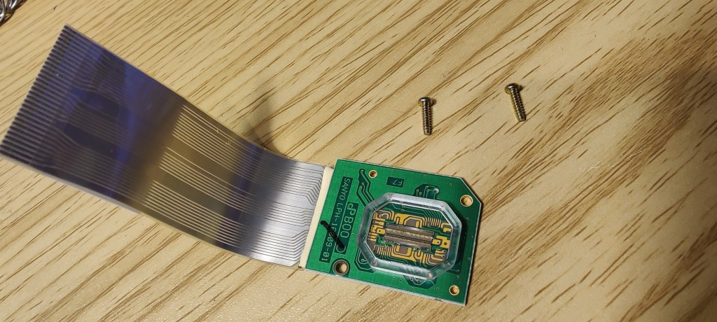 On both sides of the chassis are rectangular PCBs. They attach to the main board of the console via a ribbon cable. These little guys (both of them) are the display.