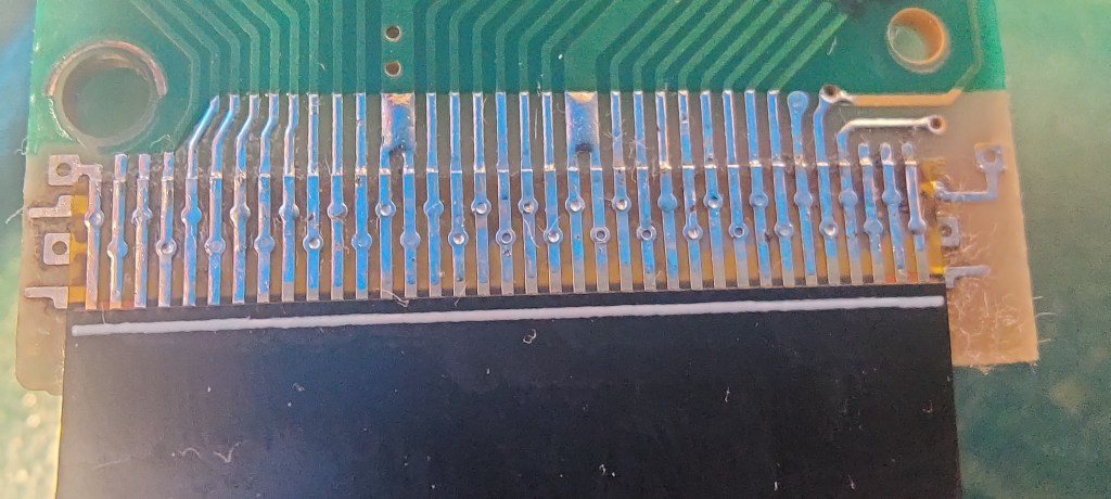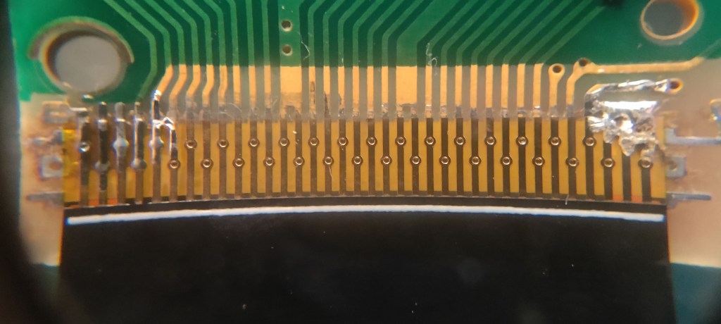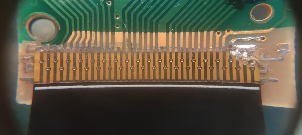 Once I have the new ribbon aligned, I’ll blob solder on one side. I’ll double-check the alignment, make adjustments if needed, and then solder the other side.