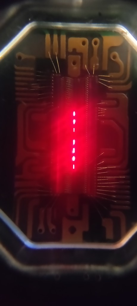 With the display PCBs back in the system, I can now show you how these little guys work. As you can see in the images above, a thin line of red LEDs runs in a strip down the center.